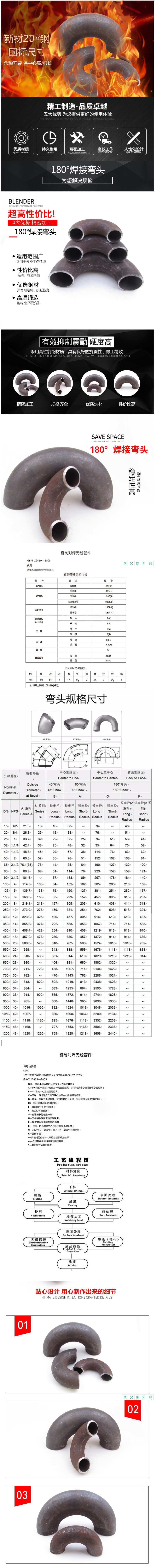 无缝碳钢180度焊接弯头1.5倍长半径冲压弯头180°U型弯
