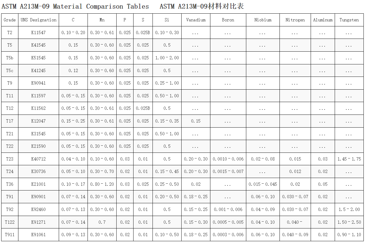 ASTM A213/A213M无缝铁素体和奥氏体合金钢锅炉、过热器和换热器管标准规范
