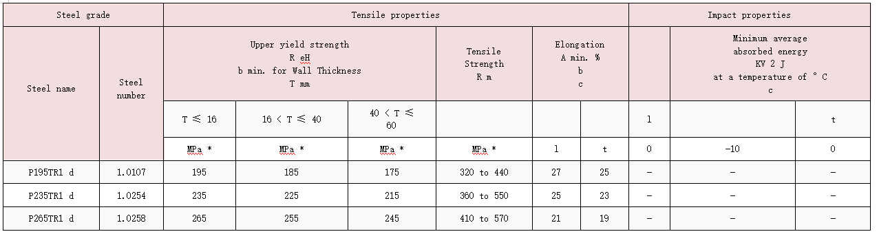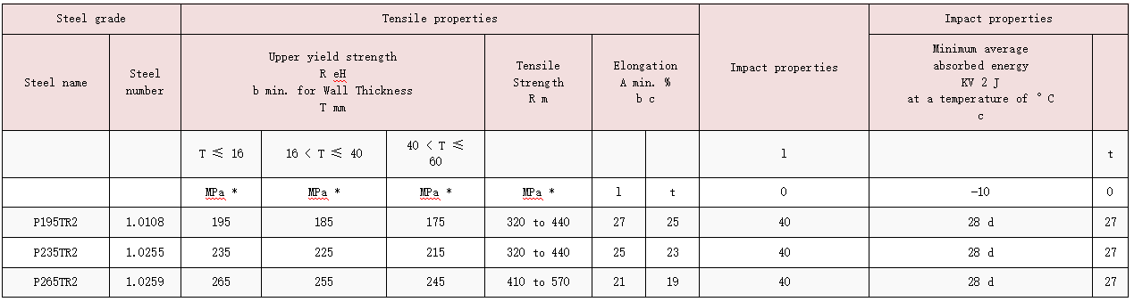 EN 10216是一个标准,涵盖了P235TR2级钢,非常适合压力应用。此外,欧洲标准EN 10216-1规定了两种质量钢的技术交付条件,即EN 10216-1 p235tr1TR2。