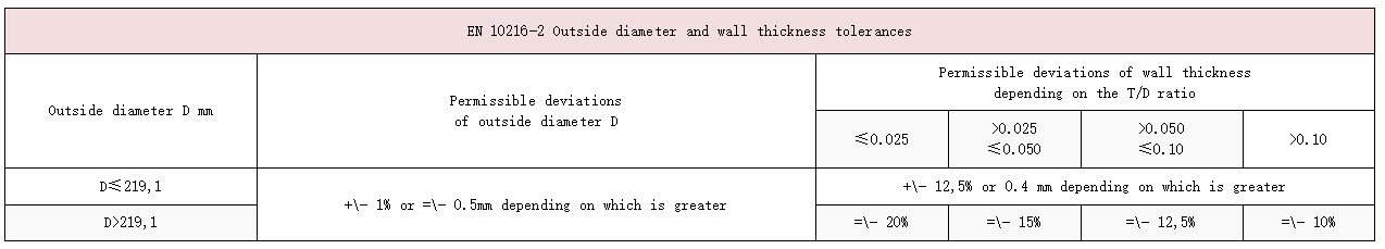 Dimension for EN10216-2 Steel pipe  EN10216-2钢管尺寸