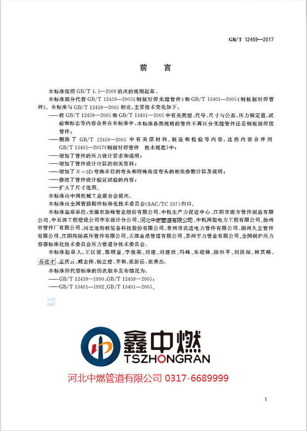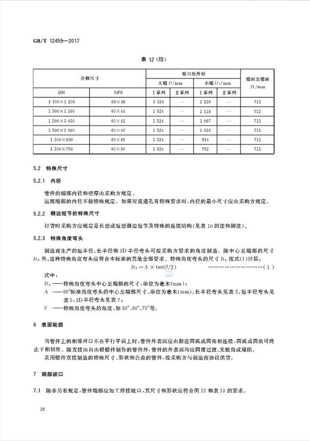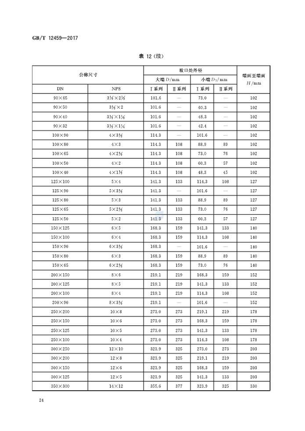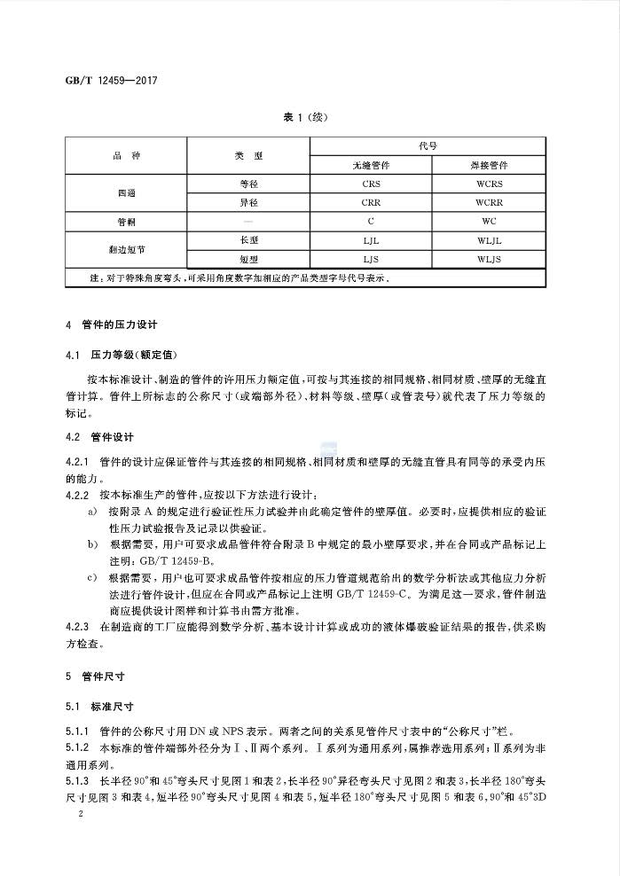 GB/T12459-2017钢制对焊管件 类型与参数