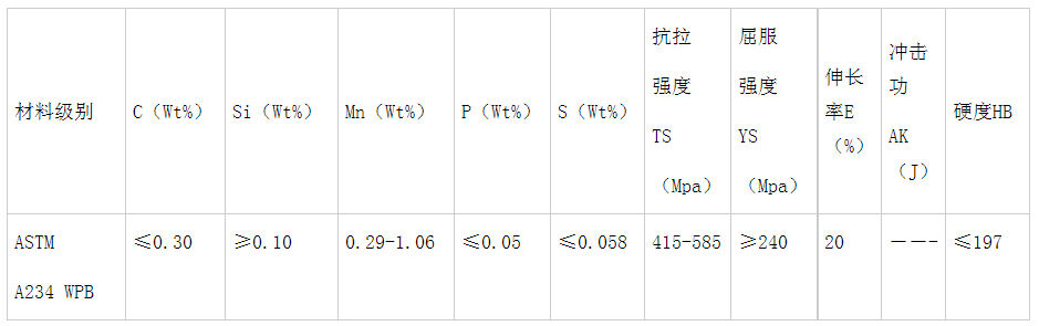 表3   ASTM A234 GR.WPB化学成份及性能指标(标准值)