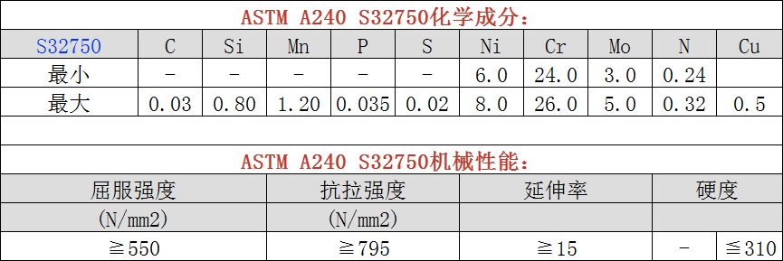 ASTM A240/A240M S32750化学及机械性能分析: