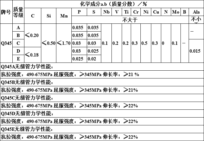Q345A级,是不做冲击;Q345B级,是20度常温冲击;Q345C级,是0度冲击;Q345D级,是-20度冲击;Q345E级,是-40度冲击。在不同的冲击温度,冲击的数值也有所不同。在板材里,属低合金系列。在低合金的材质里,此种材质为最普通的。Q345过去的一种叫法为:16Mn。